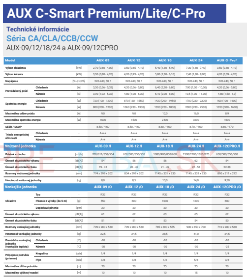 -vnútornú jednotku AUX 09CLA C-Smart LITE s chladiacim výkonom 2,7 kW